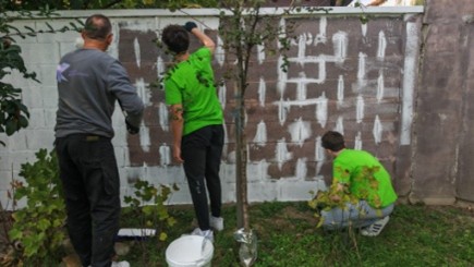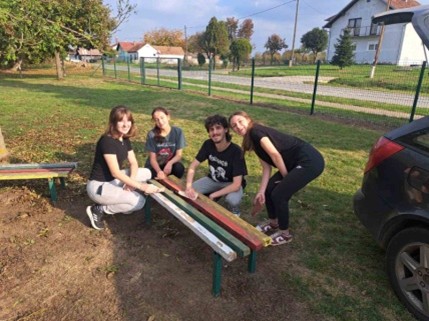 Akcija broj 13 odvijala se prvi dan volontiranja. Učenici naše škole sudjelovali su u akciji tako što su vrijedno pomagali bojanjem klupa i zida u dvorištu centra Amadea čime su doprinijeli stvaranju ugodnog i lijepog okruženja. Voditeljica grupe bila je sestra Amadea.