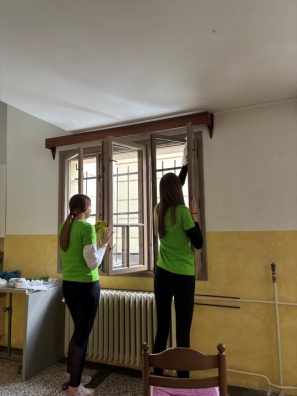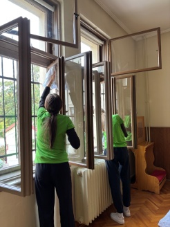 Pod vodstvom sestara Matee Čelik i Gabrijele Damjanović, osam učenica prvih i trećih razreda bilo je u akciji pranja prozora u samostanu Milosrdnih sestara svetog Križa.